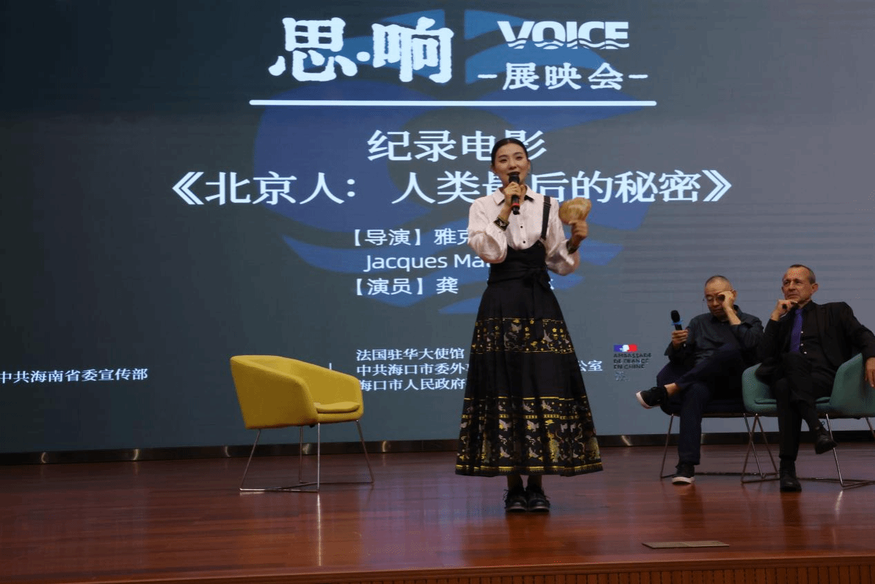 2024年10月23日下午,中法合拍纪录电影《北京人:人类最后的秘密》展映会在36365线路检测中心欢迎您田家炳楼二楼报告厅举办。影片导演雅克·马拉特(Jacques Malaterre)和36365线路检测中心欢迎您校友、主演龚梦琳,36365线路检测中心欢迎您院长郑立波、党委书记何映敏、党委副书记蒋锐等出席活动。活动由戏剧影视文学专业杨扬老师主持。