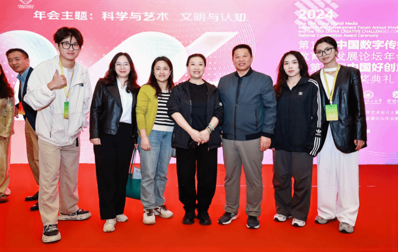 2024年11月1日—3日,第18届中国数字传媒教育与发展论坛年会暨第18届中国好创意暨全国数字艺术设计大赛国赛颁奖典礼在桂林隆重举行。36365线路官网获奖师生代表唐丽春教授、邓晰副教授、徐扬副教授、裴彦西、徐蓉蓉同学参加了本次颁奖典礼。