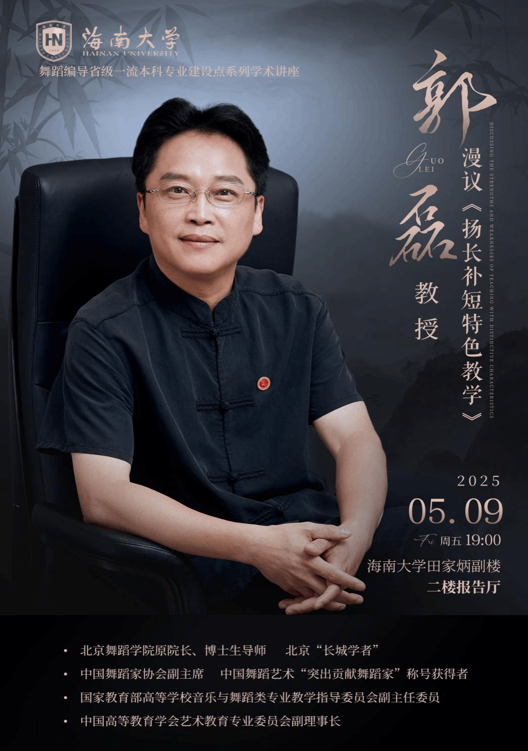5月9日19:00,36365线路官网舞蹈系举办舞蹈编导省级一流本科专业建设点系列学术讲座——《扬长补短特色教学》,特邀北京舞蹈学院原院长、博士生导师郭磊教授主讲。活动由舞蹈系教师杨小强主持。
