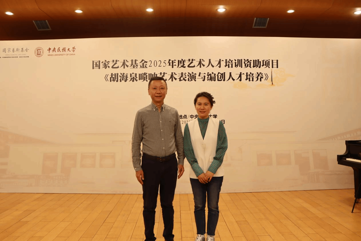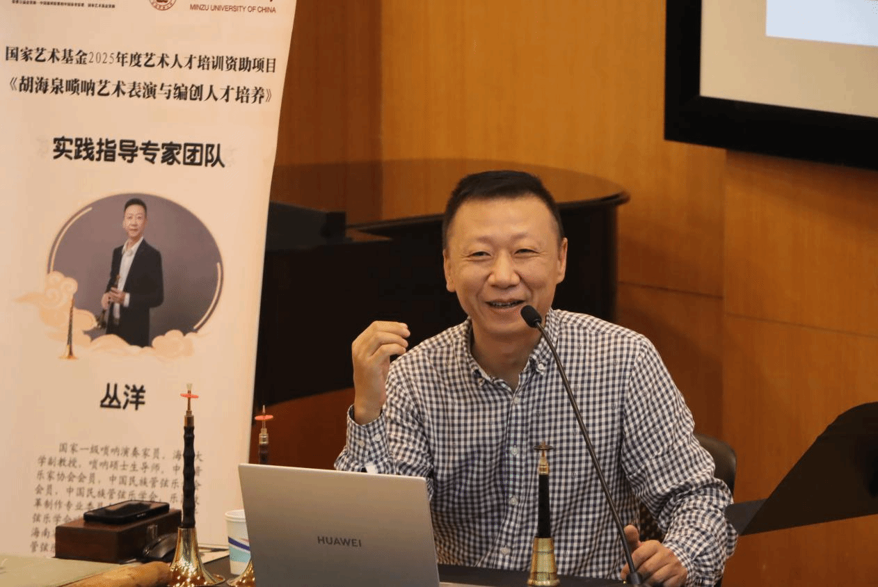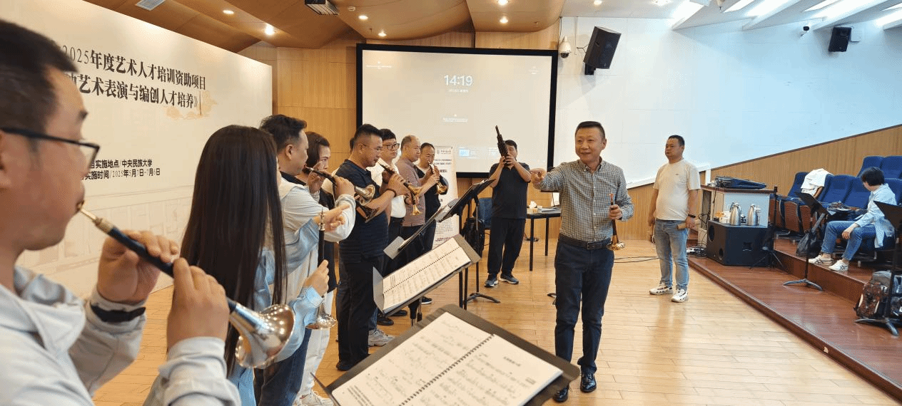 2025年5月23日,36365线路官网音乐系丛洋副教授,受中央民族大学音乐学院胡美玲老师之邀,出席国家艺术基金2025年度艺术人才培训资助项目活动——《胡海泉唢呐艺术表演与编创人才培养》,为全国各省40多名优秀学员进行唢呐专家授课。