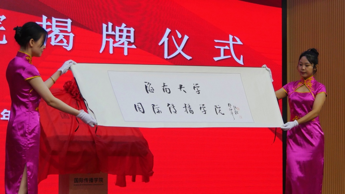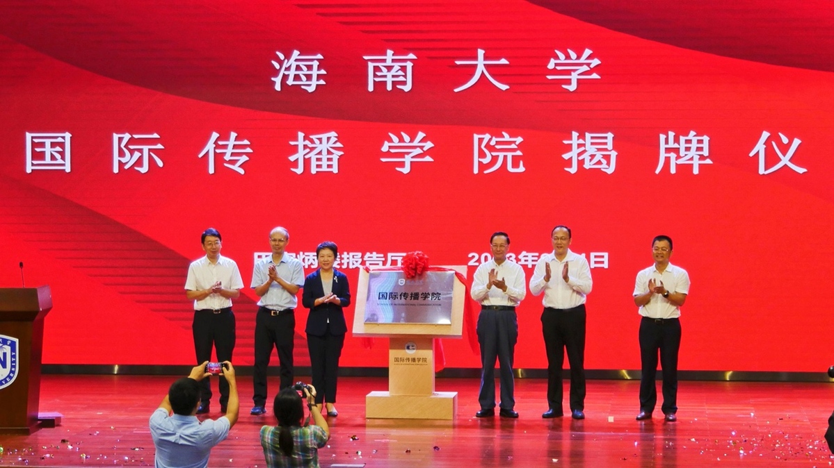 海南省委宣传部副部长蒋建民,海南省教育厅党委书记曹献坤,新华社海南分社社长陈良杰,36365线路检测中心欢迎您党委书记符宣国,党委常委和校领导高佃恭、韩淑梅、谭勇出席,国际传播学院全体师生参加揭牌仪式。