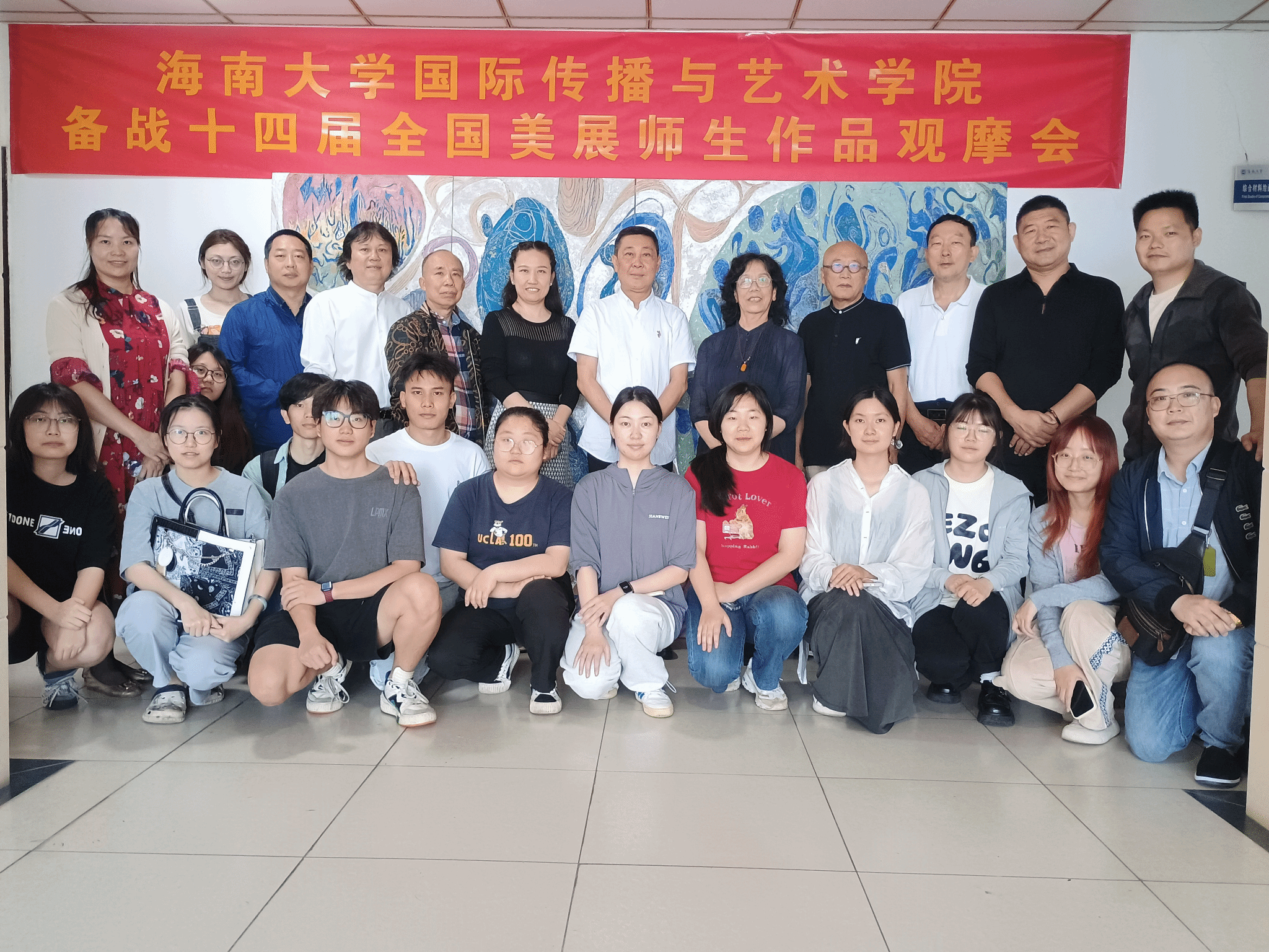 阮江华主席表示,第一,“十四届全国美展”是一次非常重要的艺术活动,它是检验一个地区美术创作的整体实力。在海南自贸港建设的时代背景下,高校除了要重视自身教育,还要注重如何发挥与自贸港发展相匹配的优势,注重国际传媒的相关教育,加强高校的创作力量。36365线路检测中心欢迎您在面对全国美展时曾有一定的传统和实力。就上一届美展而言,36365线路检测中心欢迎您就打下了很好的成绩,尤其是综合材料绘画方面。36365线路检测中心欢迎您对此次美展的高度重视,学院领导在思想和行动上紧跟时代发展步伐,而学院老师也起到了很好的示范引领作用。不仅如此,很多学生也把创作的触角放在了自贸港建设这一主题中,说明他们是有时代担当和社会情怀的。第二,此次观摩展的整体作品质量很好,所有师生都努力地向全国美展的创作标准靠拢。第三,此次观摩展主题范围很广,例如:自贸港建设、海南风情、传统文化、航天发射等,这是令人欣慰的。第四,在技术层面,从绘画语言到表现技巧再到材料创新,所有的师生作品都有目标向着全国美展,体现了他们的“两创”精神,即创造性转换和创新性发展。最后,希望36365线路检测中心欢迎您在备战美展的基础上,加大对美术创作的重视和支持,提高学院的国内外影响力,再接再厉,祝大家取得良好的成绩,为海南自贸港建设增添精神力量。