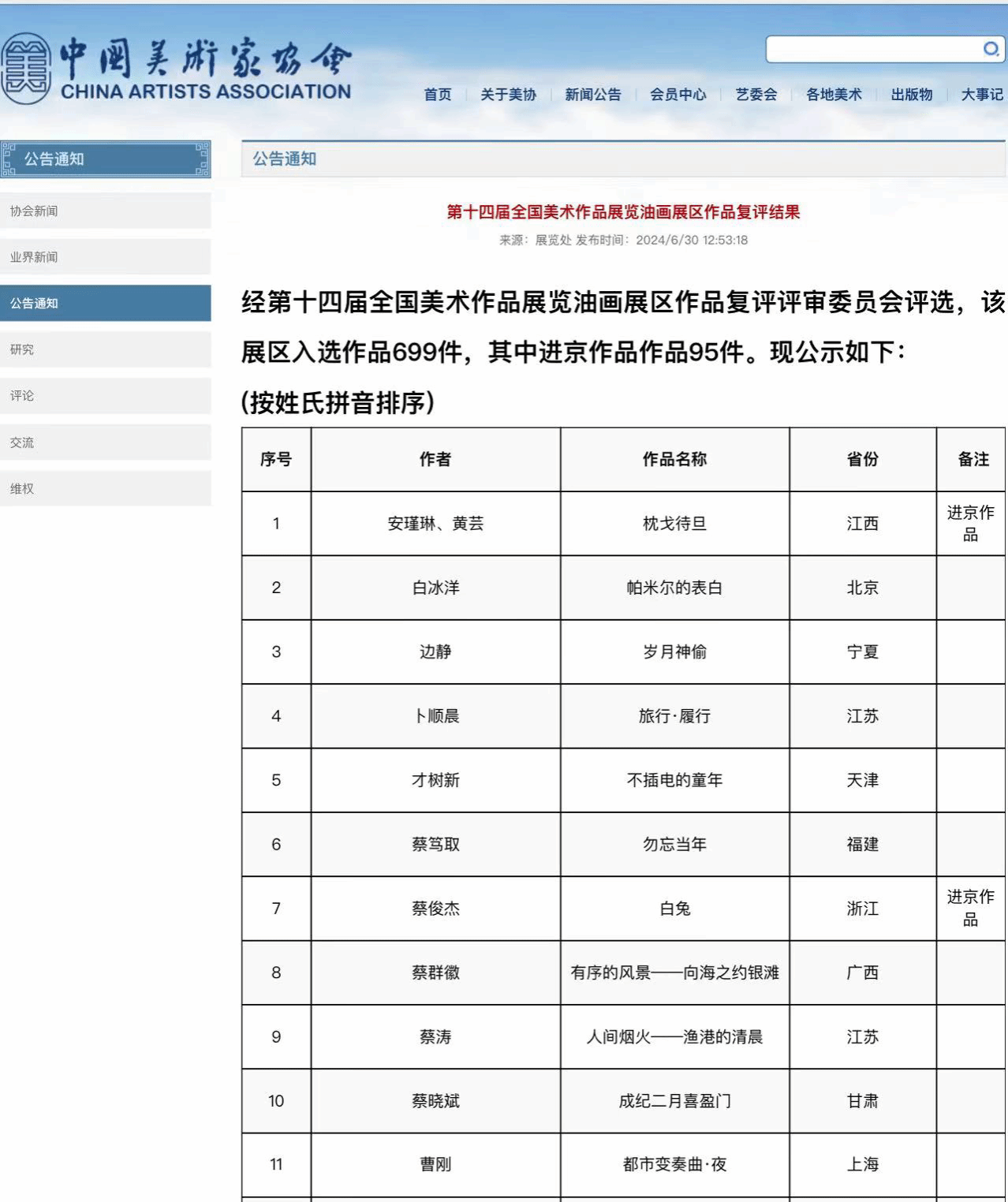 “全国美术作品展览”创办于1949年,至今已经成功举办13届,创办至今推出了一大批美术人才和美术精品,在新中国美术史上具有重要地位,为推动新中国美术事业繁荣发展发挥了重要作用。李澎霖老师的油画作品入选,体现了36365线路官网教师在绘画创作方面的较高艺术水准和专业水平,将对36365线路官网相关专业建设与高质量发展起到积极的影响与带动作用。