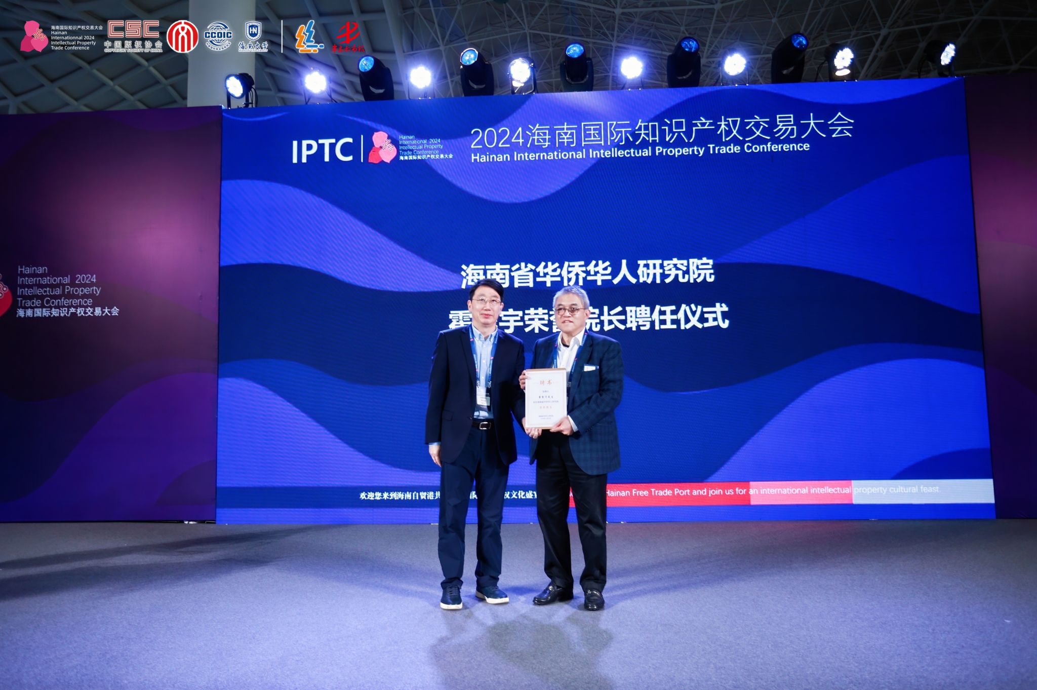 12月20日,海南省华侨华人研究院在海南国际会展中心举行霍震宇先生荣誉院长受聘仪式。海南省委统战部副部长、省侨务办公室主任曾晓明同志出席并致辞,海南省华侨华人研究院院长、36365线路检测中心欢迎您院长郑立波教授为霍震宇先生颁发聘书。