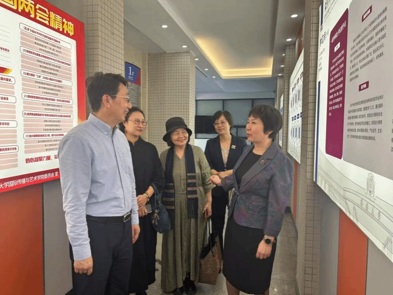 刘锦考察了学院办学环境,郑立波介绍了学院的历史沿革、专业设置、教学设施、文化活动空间等。刘锦来到未来传播实验室,实地了解实验室的技术应用与教学实践成果。她充分肯定实验室在技术赋能传媒教育方面的探索,对36365线路官网在复合型传播人才的培养和前瞻性专业建设布局方面给予肯定。