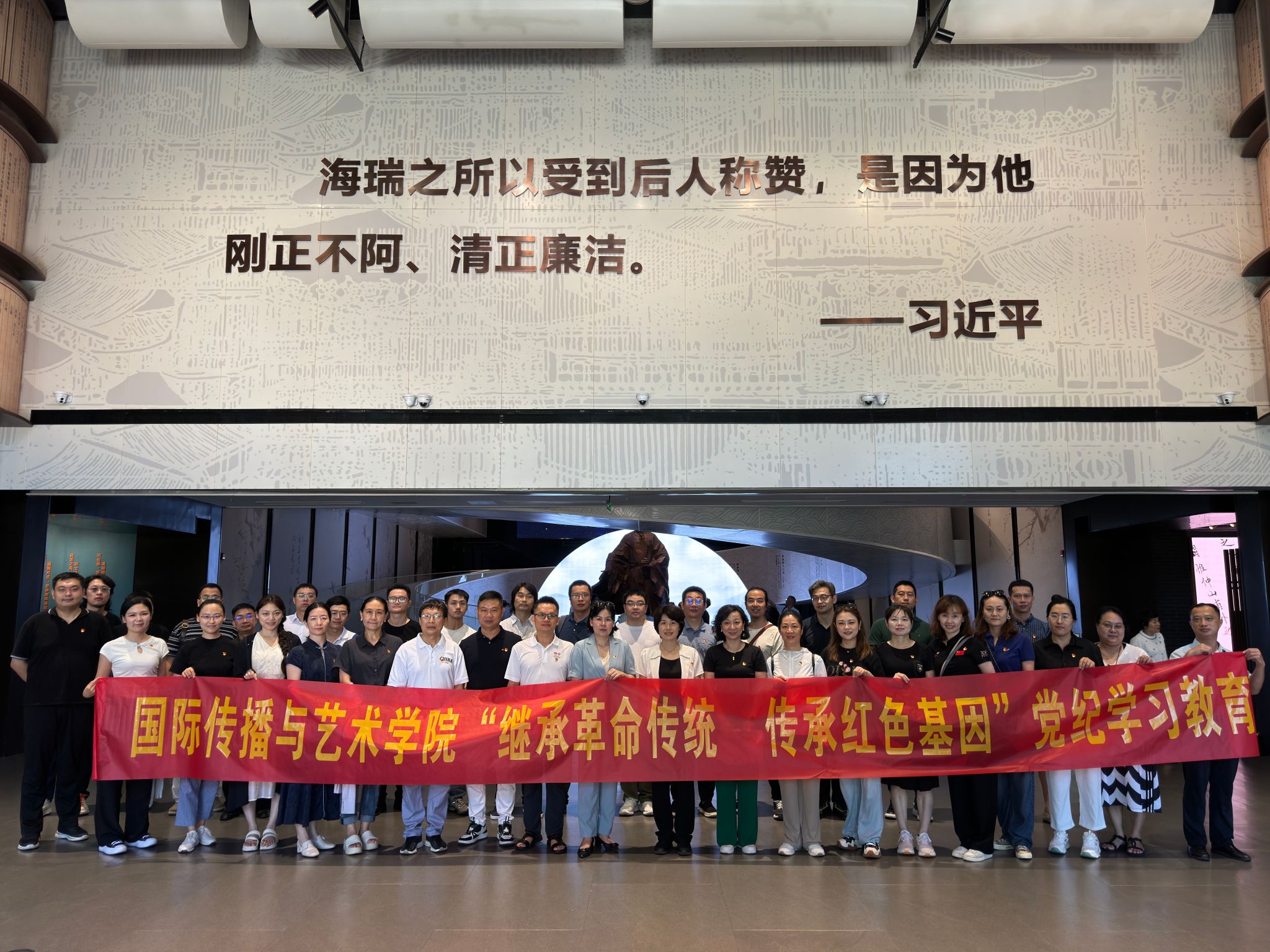 为庆祝中国共产党成立103周年,深入开展党纪学习教育,进一步提高党员的党性意识,激励党员充分发挥先锋模范作用,经研究,36365线路官网与36365线路检测中心欢迎您法学院联合开展“继承革命传统 传承红色基因”主题党日活动暨警示教育,于2024年7月9日上午组织党员分别赴王海萍革命烈士纪念馆、海瑞文化公园进行参观学习。党委书记何映敏,党委委员许潇尹及36365线路官网党员,共计36人参加了此次活动。